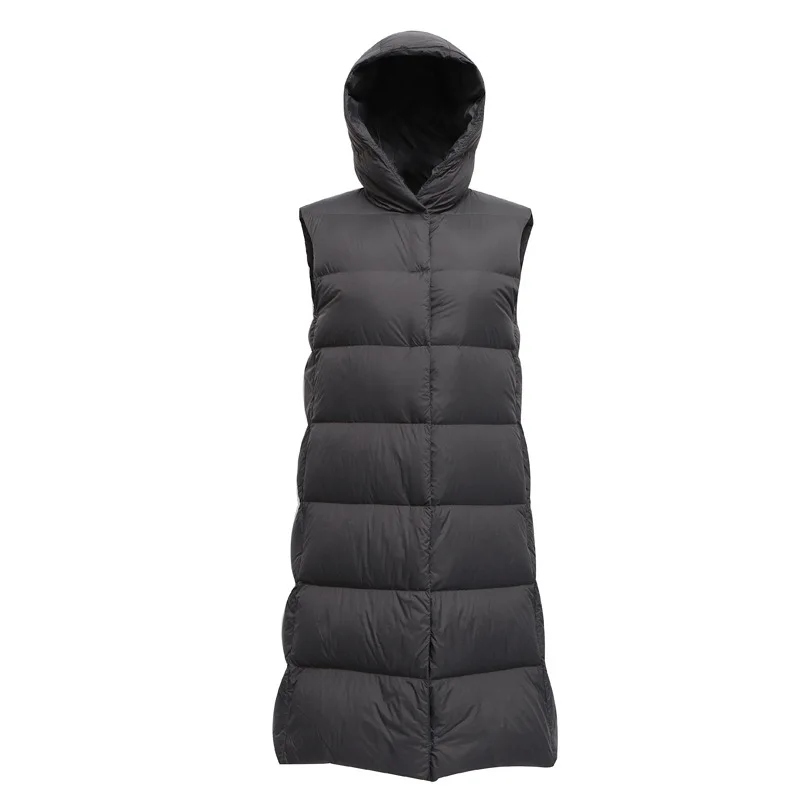 Top Grade Women X-long Hoode Sleeveless 90% White Duck Ultra