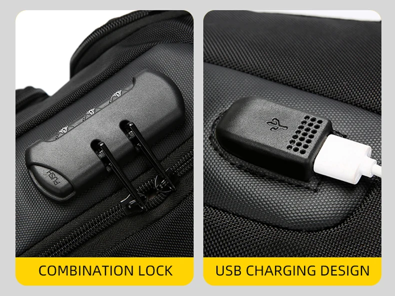 2. Three-digit combination lock and side USB charging port for secure and convenient access