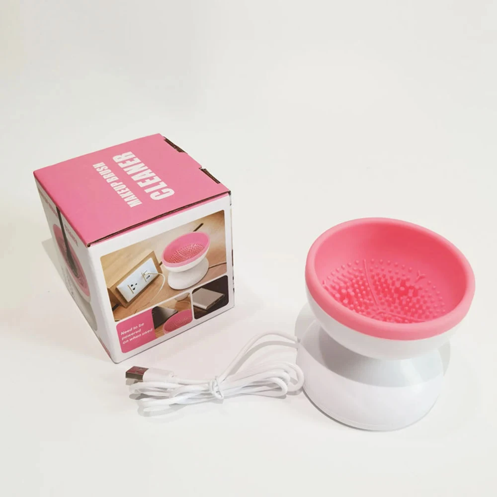 The USB powered electric makeup brush cleaning machine can directly clean your makeup brush kit. No assembly required, one click cleaning, simple operation. Please add some makeup remover when cleaning the brush.