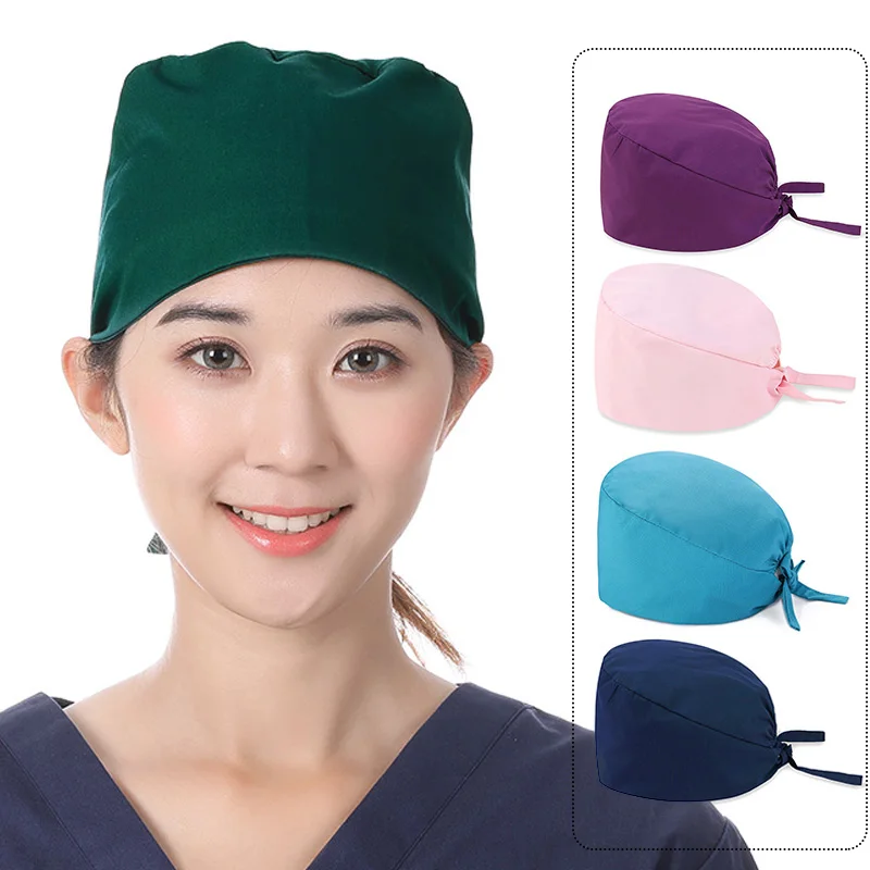 Unisex Women Scrub Nurse Caps Solid Color Adjustable