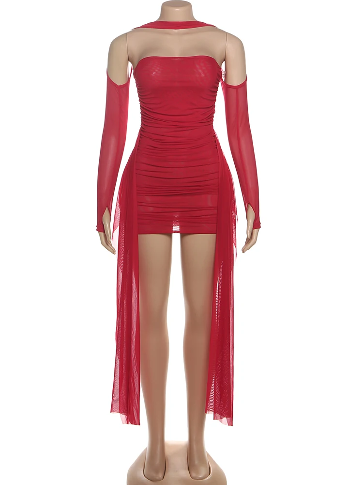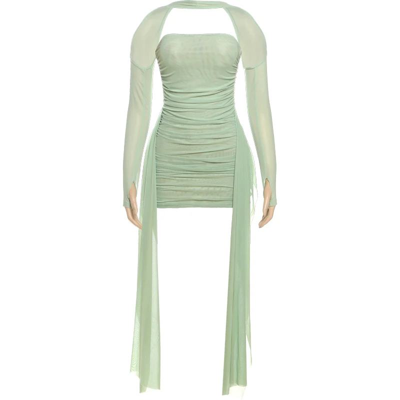 Weird Puss Sexy See Through Dress+Shawl Women Ruched Side