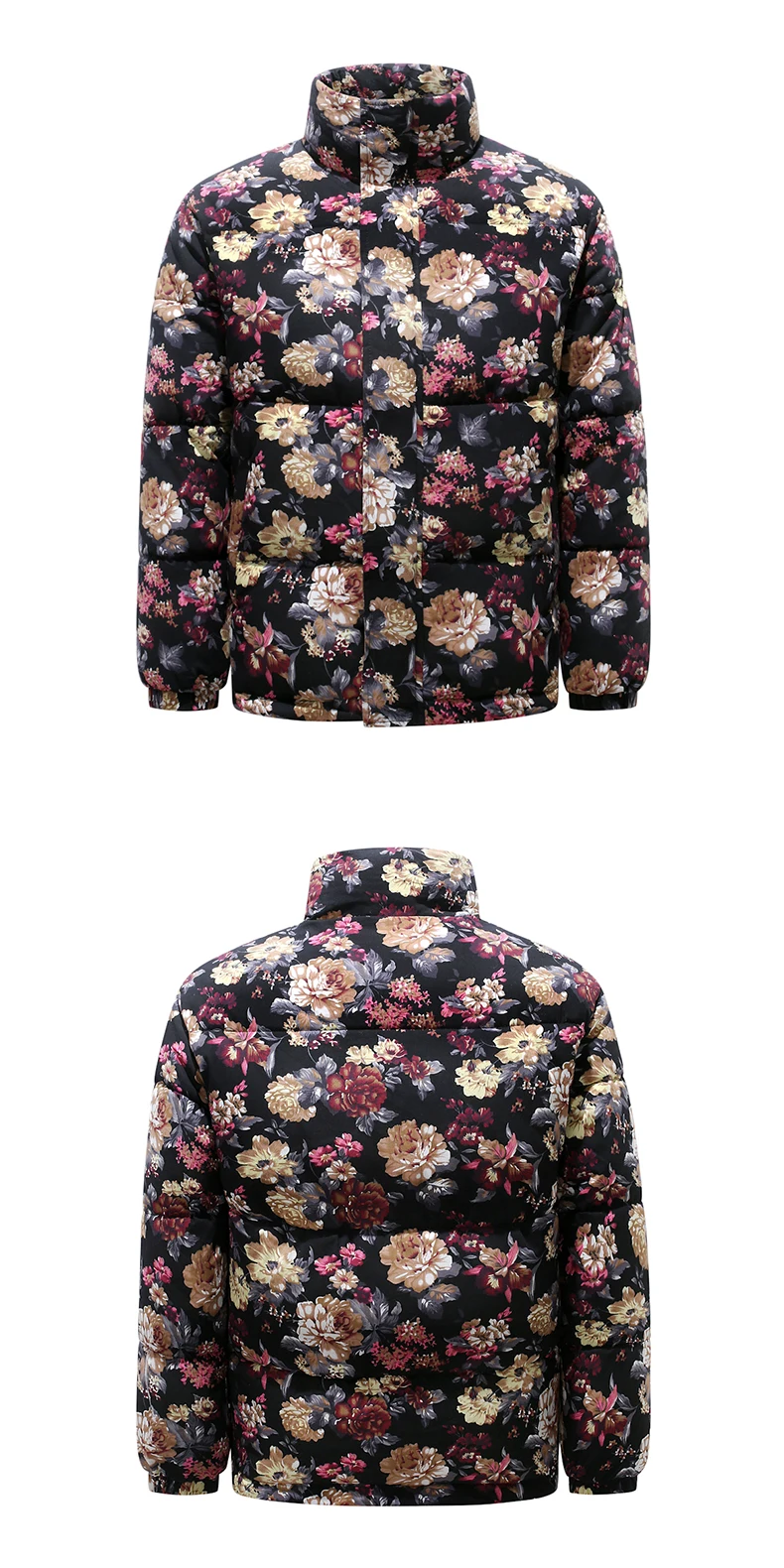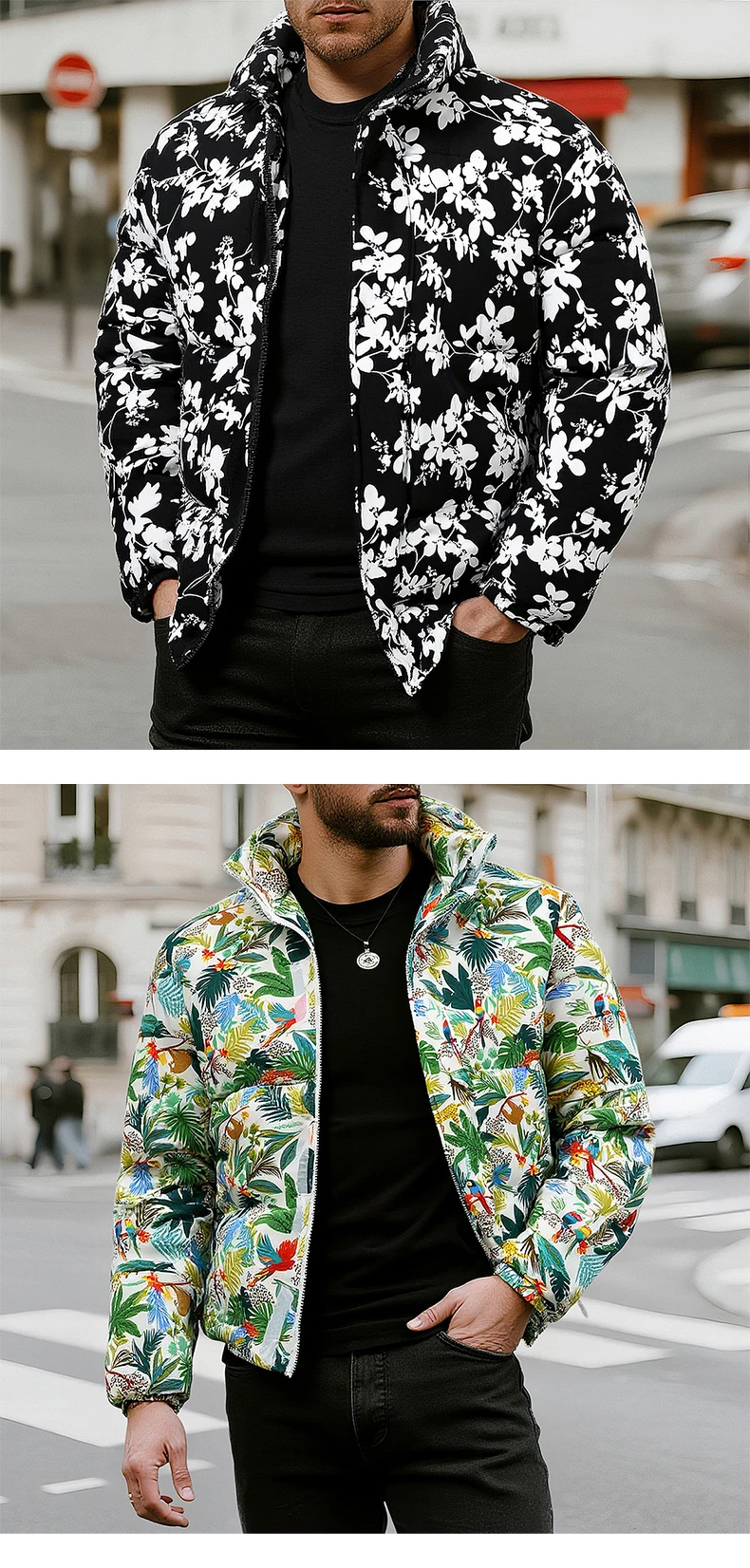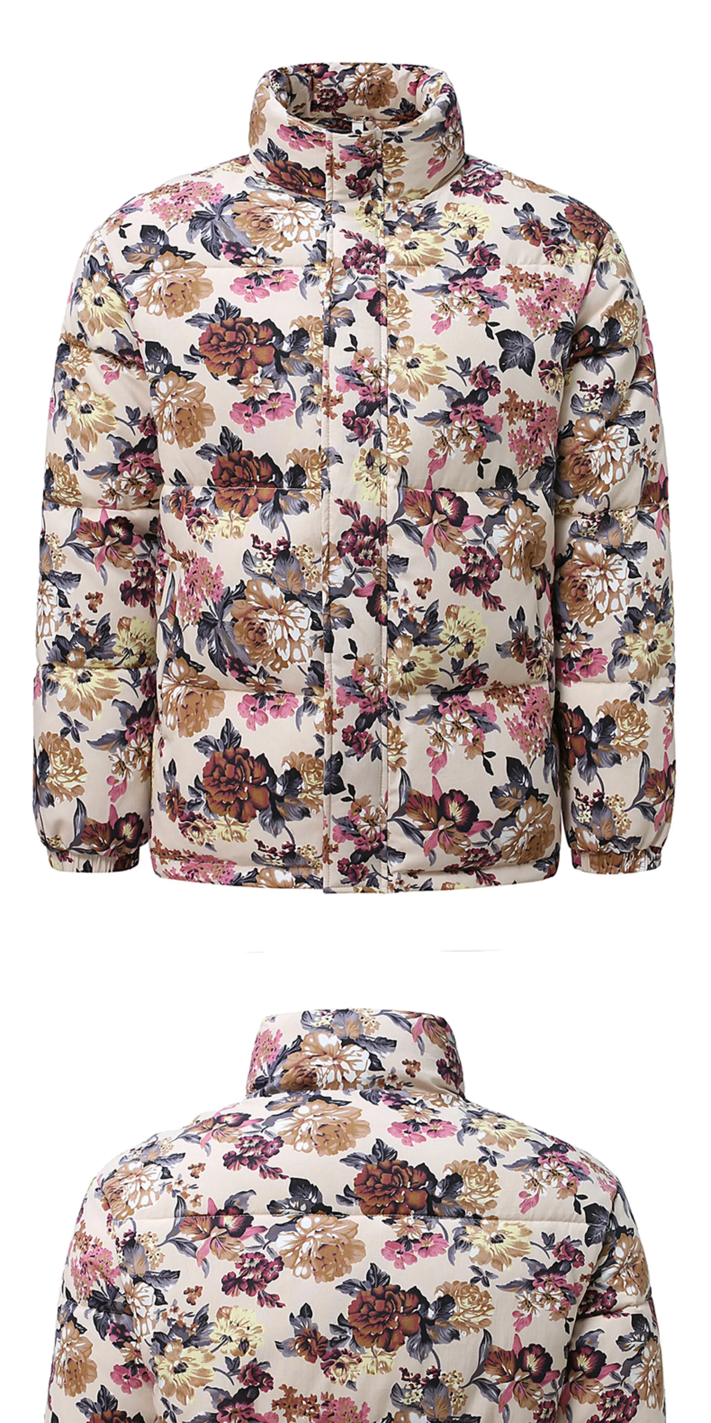Winter Arrival Men's Beige Long-Sleeve Printed Thick Jacket,