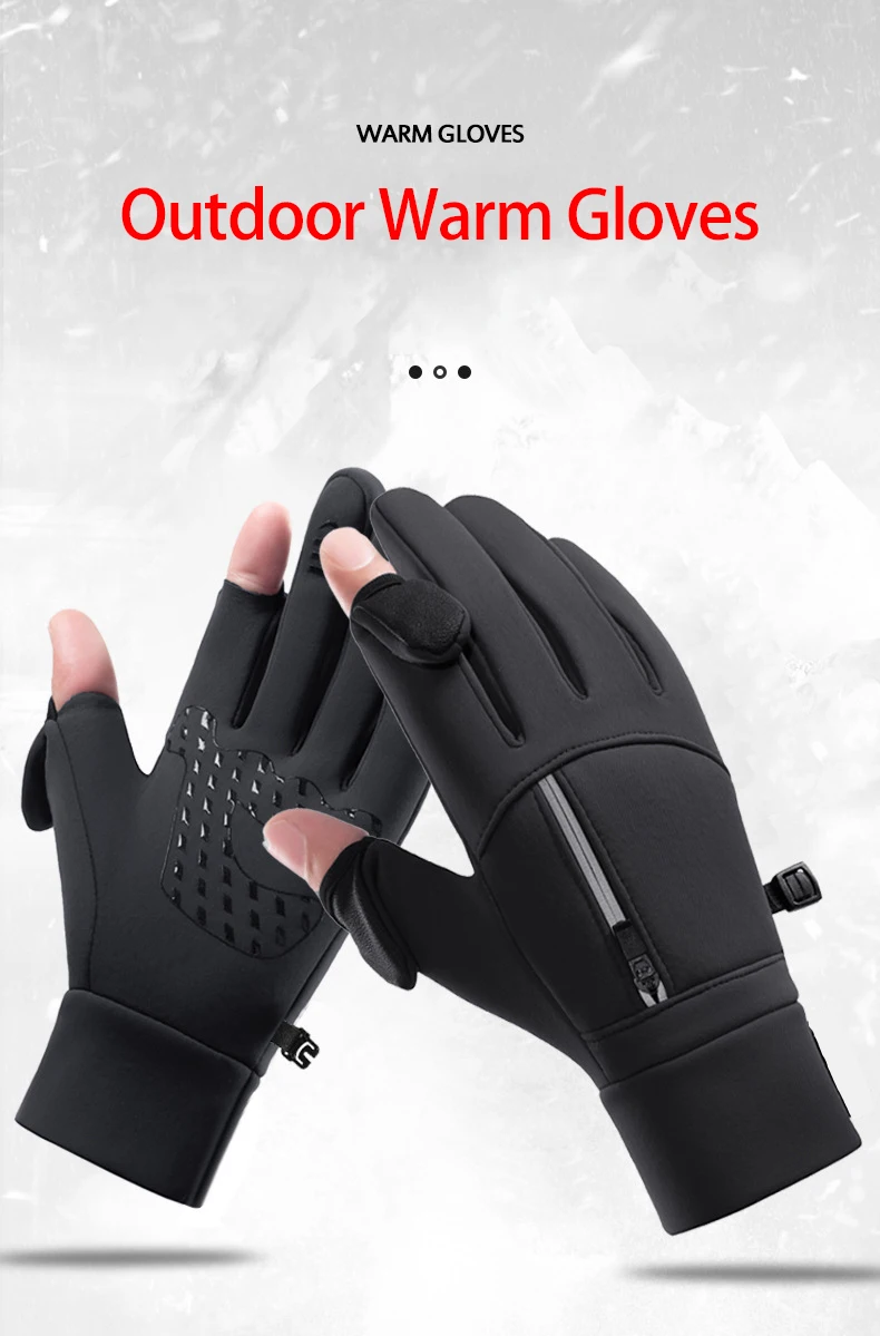 Winter Cycling Gloves Windproof Men Women Touchscreen Warm Gloves Motorcycle Water-Repellent Zipper Pocket Fingertip Flip Gloves