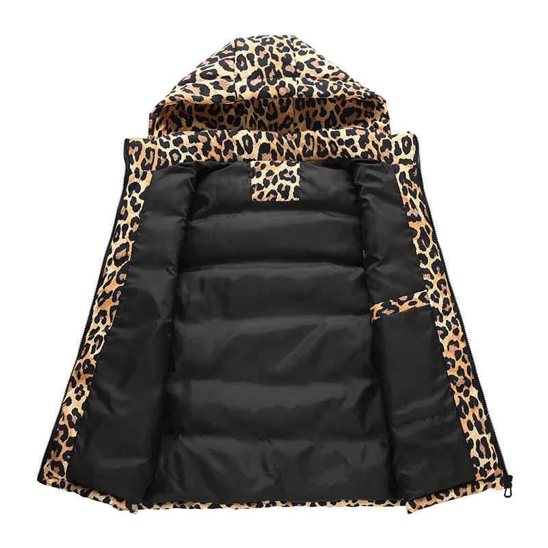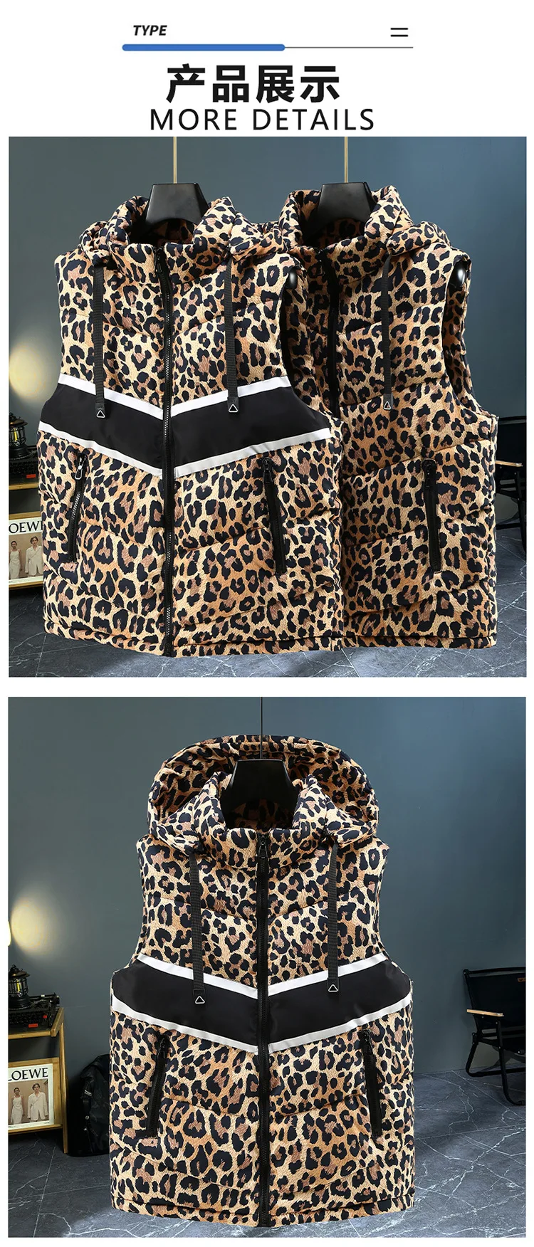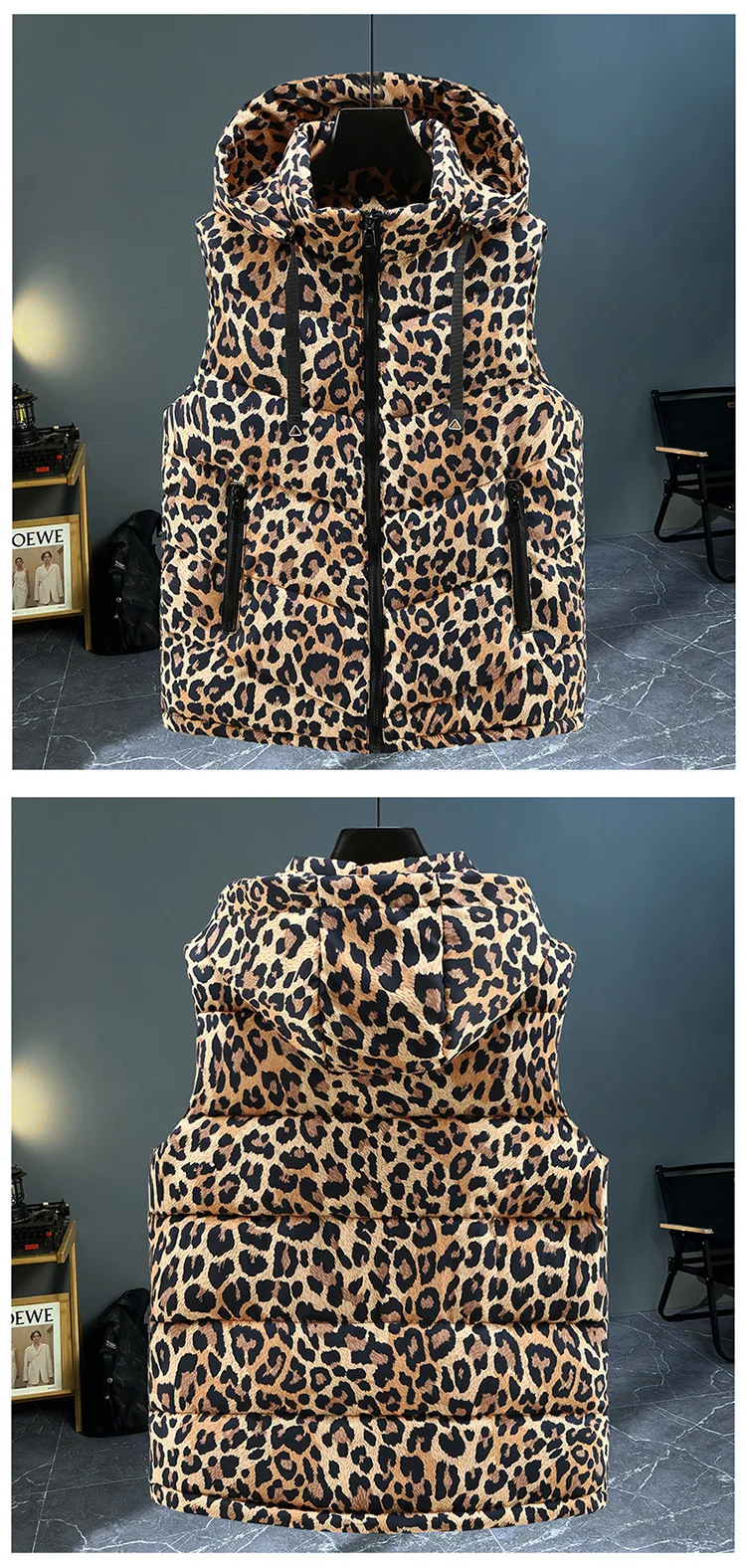 Winter Sleeveless Jacket Men Leopard Print Outerwear Vest