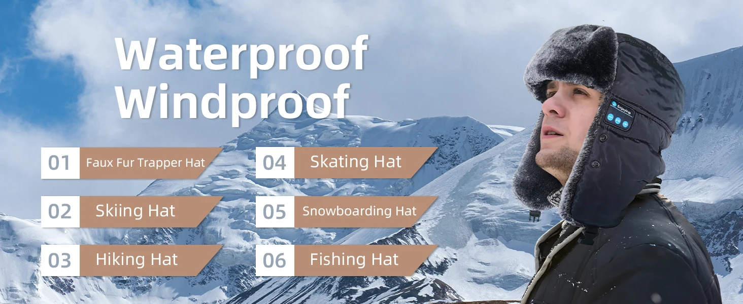Wirelss Headset Hat Trapper Winter Russian Ushanka Ski Hat