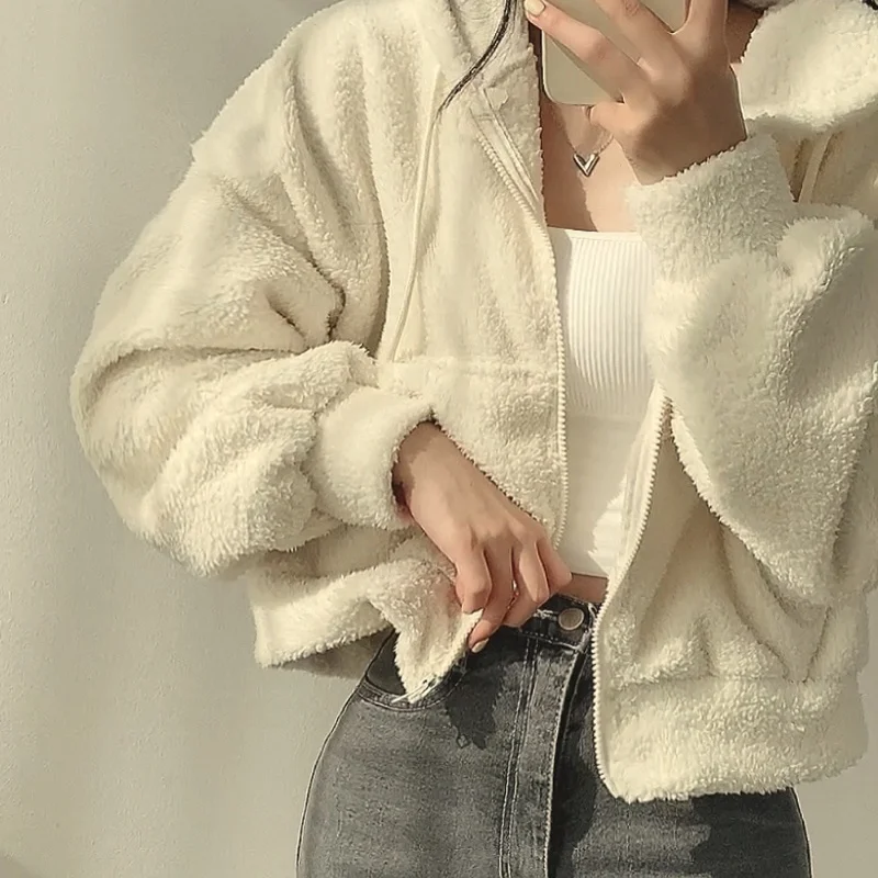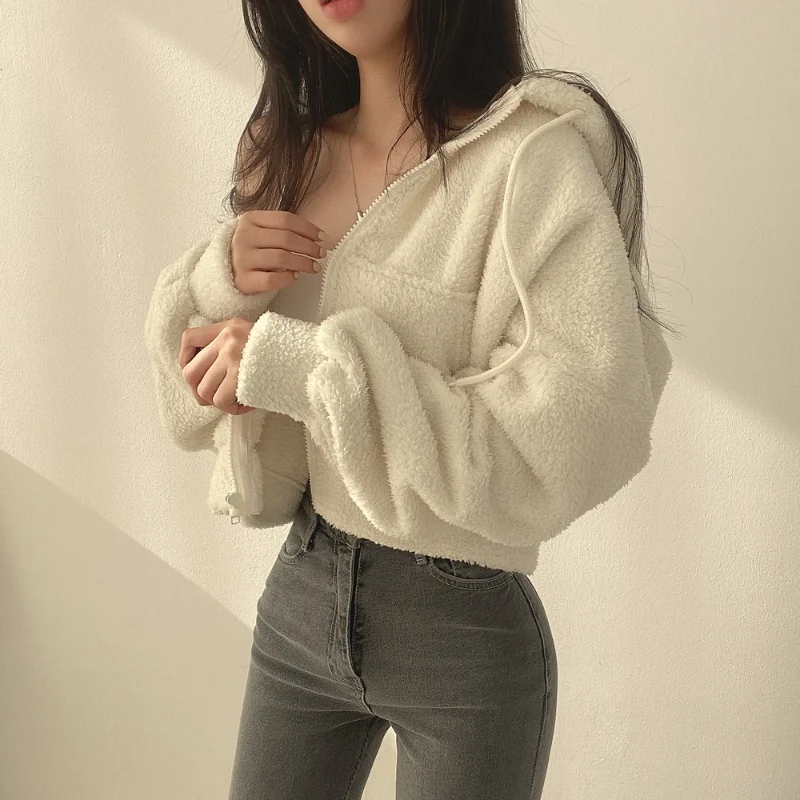 Women Autumn Winter Thicken Warm Fleece Hoodie Zipper