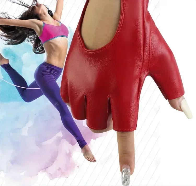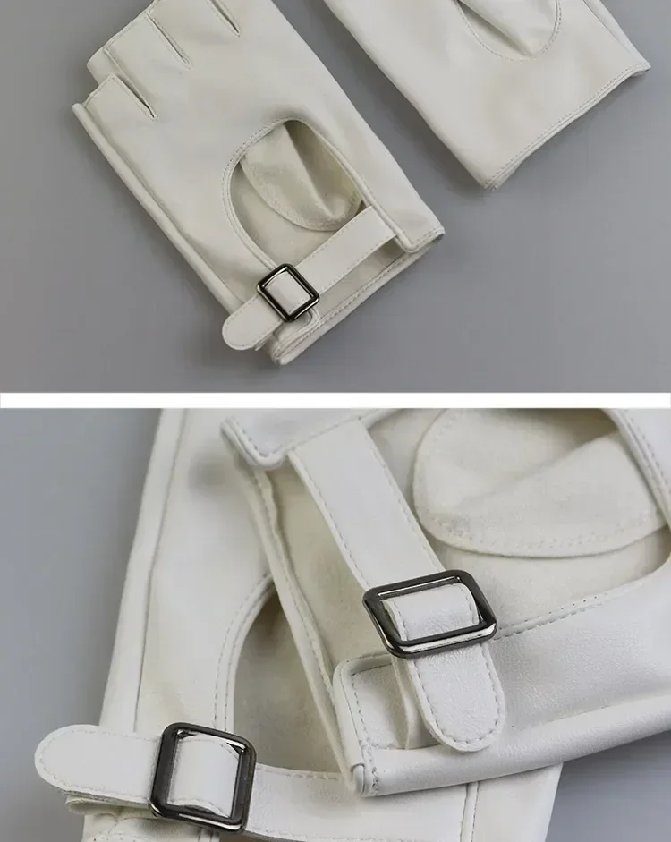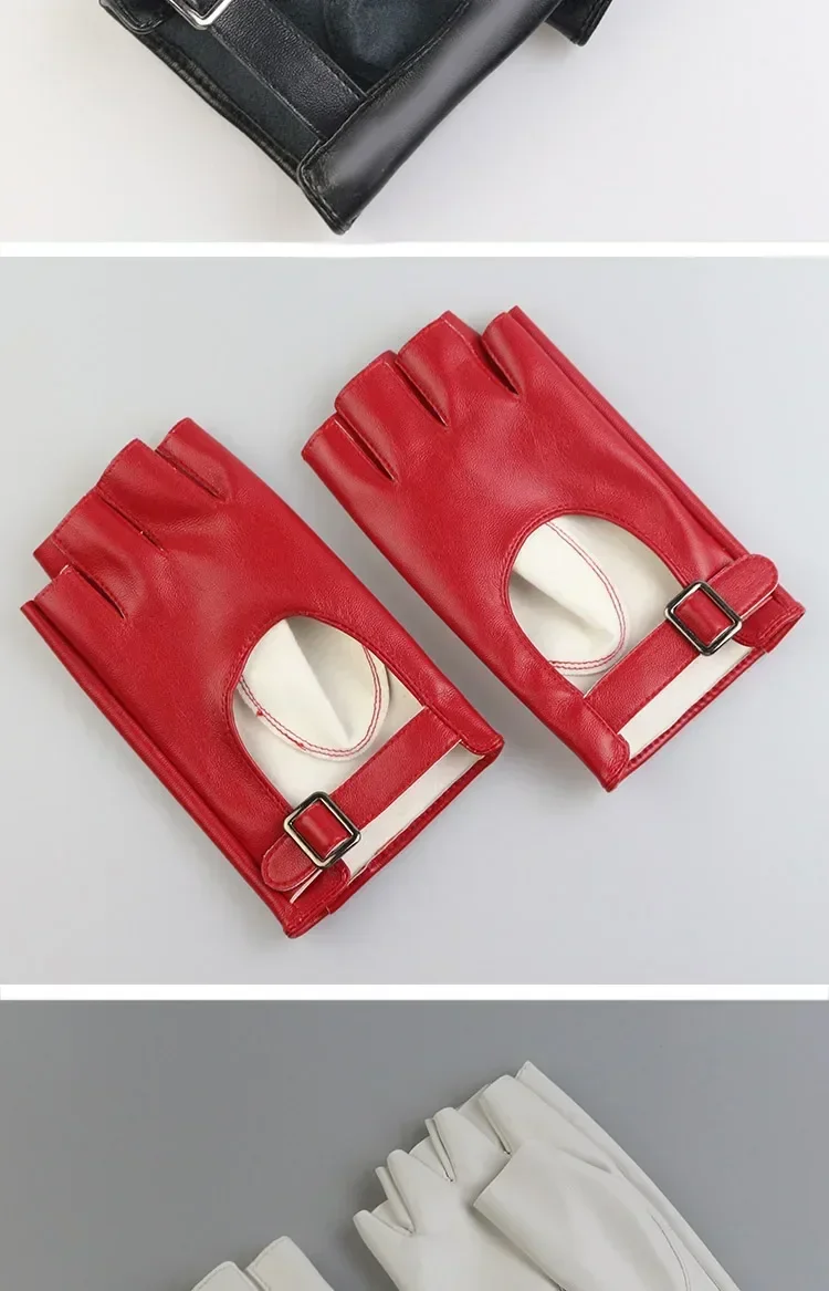 Women Halloween PU Leather Waterproof Fingerless Gloves