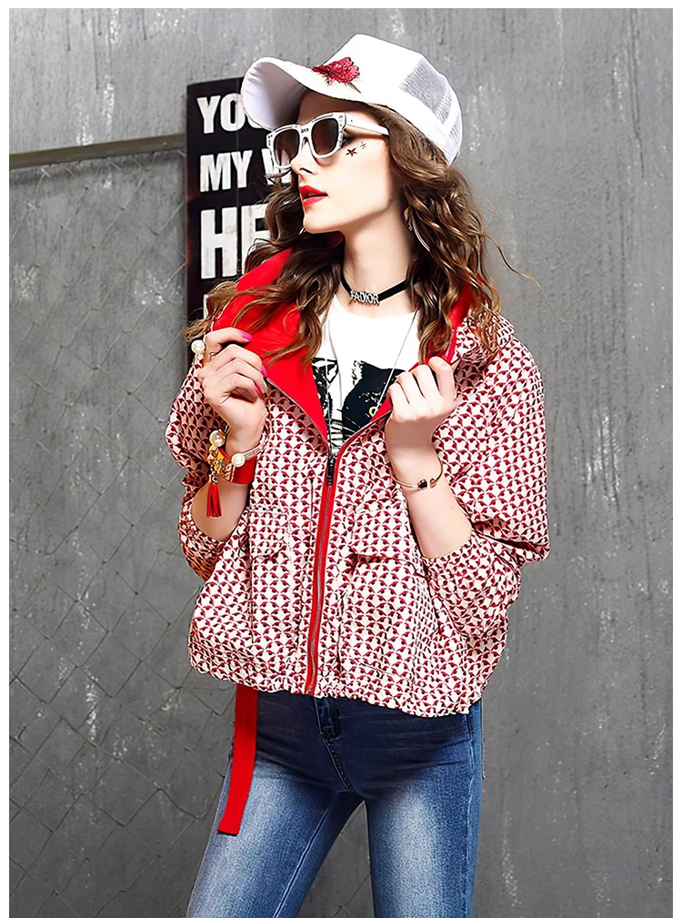 4.Geometric Pattern & Drawstring Hem: The red-white geometric pattern makes a bold statement, while the adjustable drawstring hem allows you to tailor the fit and accentuate your style.