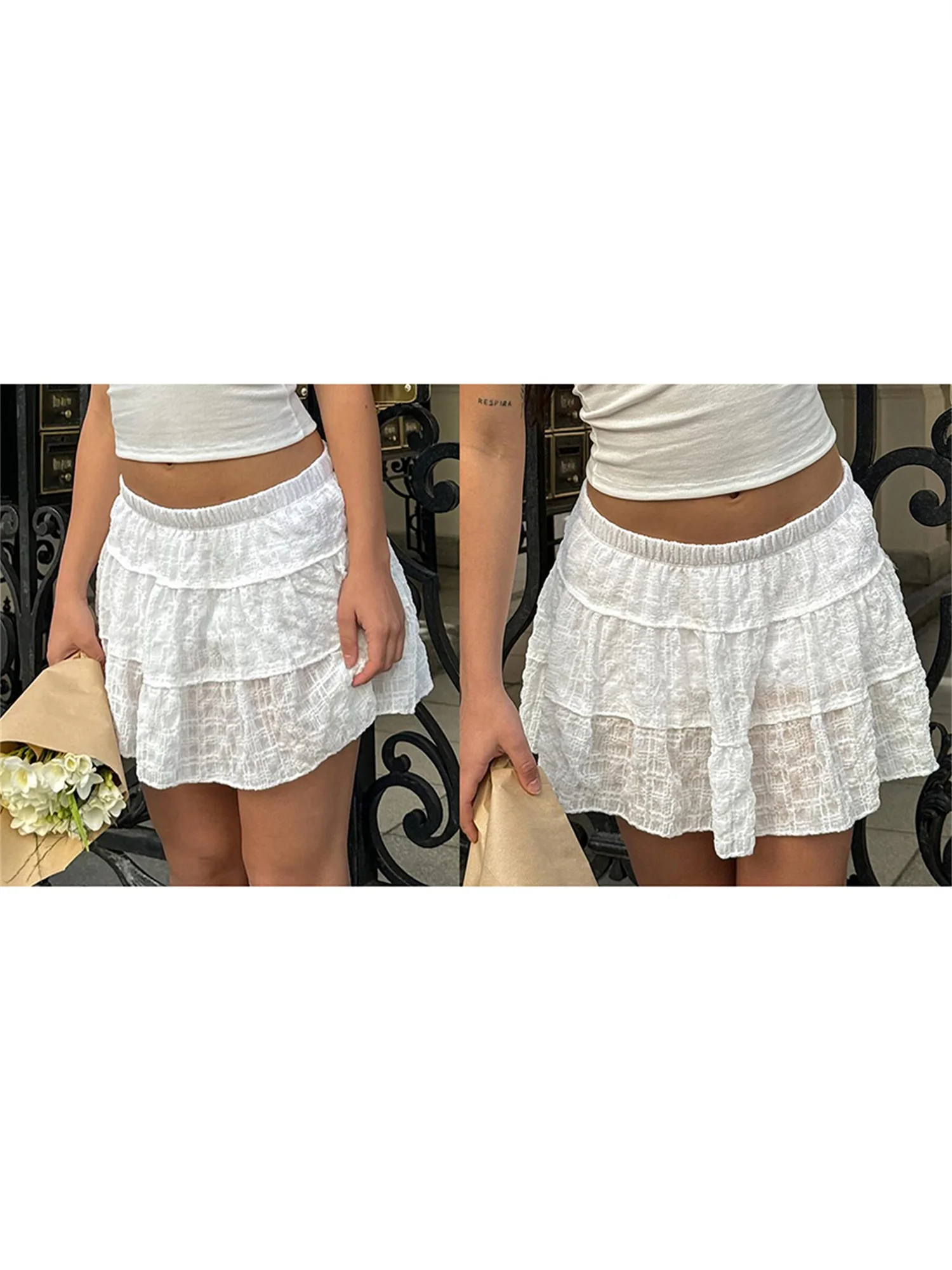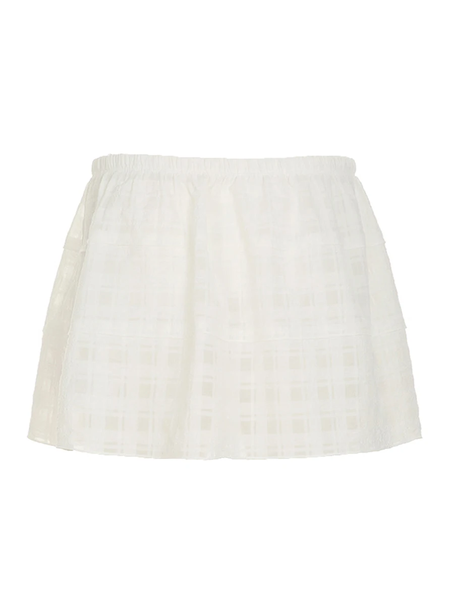 Women's Summer Skorts Stylish Light Plaid Pattern Elastic Waist Low Rise Mini Skirts with ShortsSize (cm)