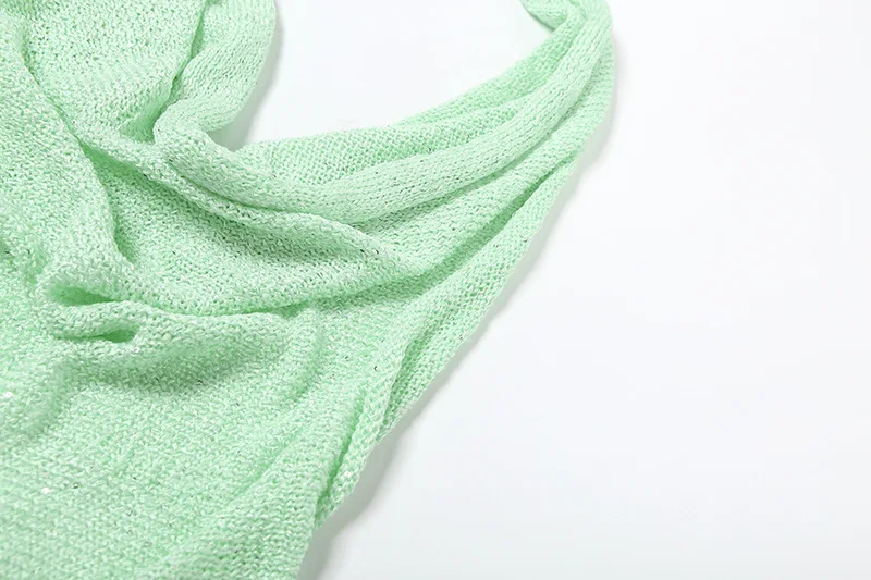 Women Sexy Sequins Knitted Mini Beach Dress Swinging Collar