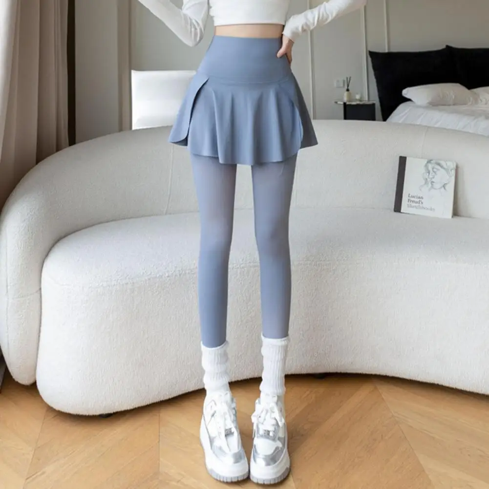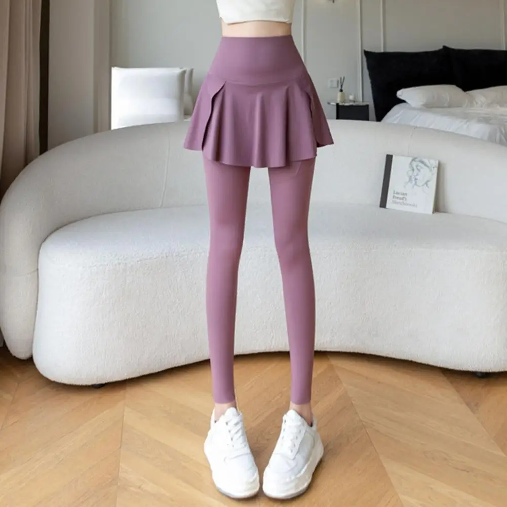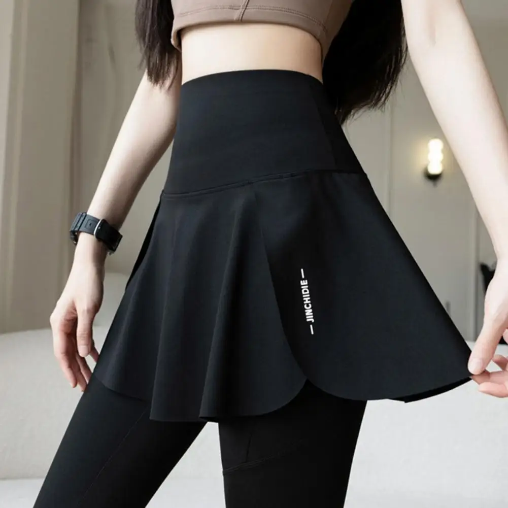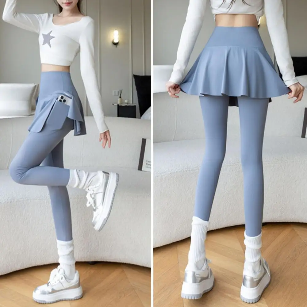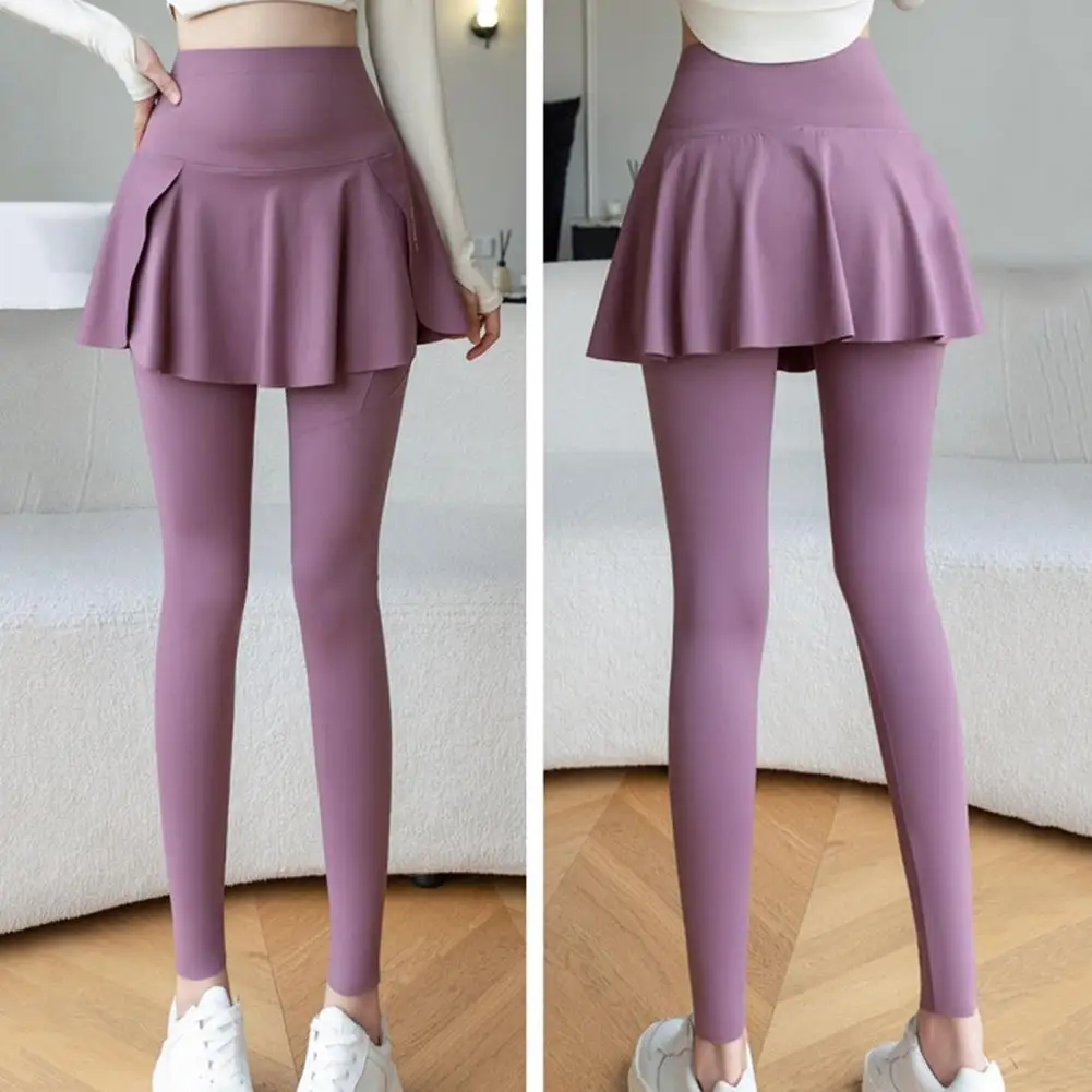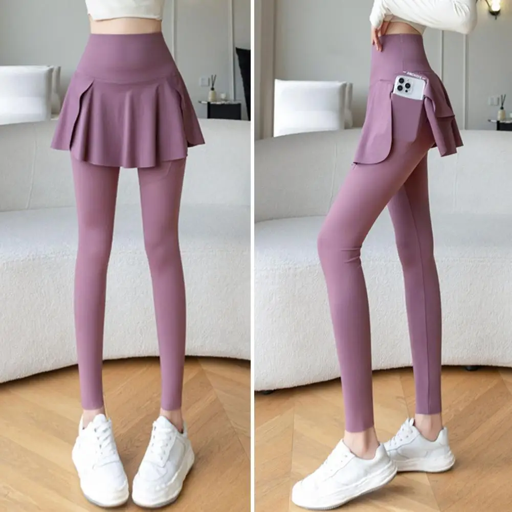 Women Tennis Skirted Leggings Pockets Elastic Sports Yoga