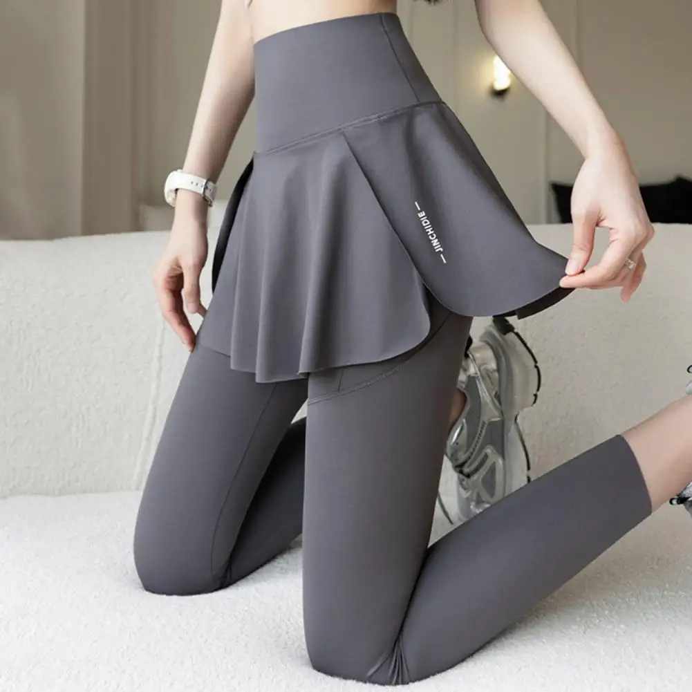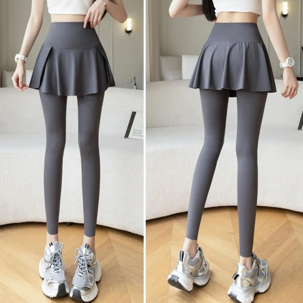 Stylish Two-Piece Culottes: Elevate your activewear with these high-waisted culottes that boast a trendy two-piece design. The A-line silhouette creates a slimming effect, while the seamless side pockets add both functionality and fashion-forward flair to your look.
