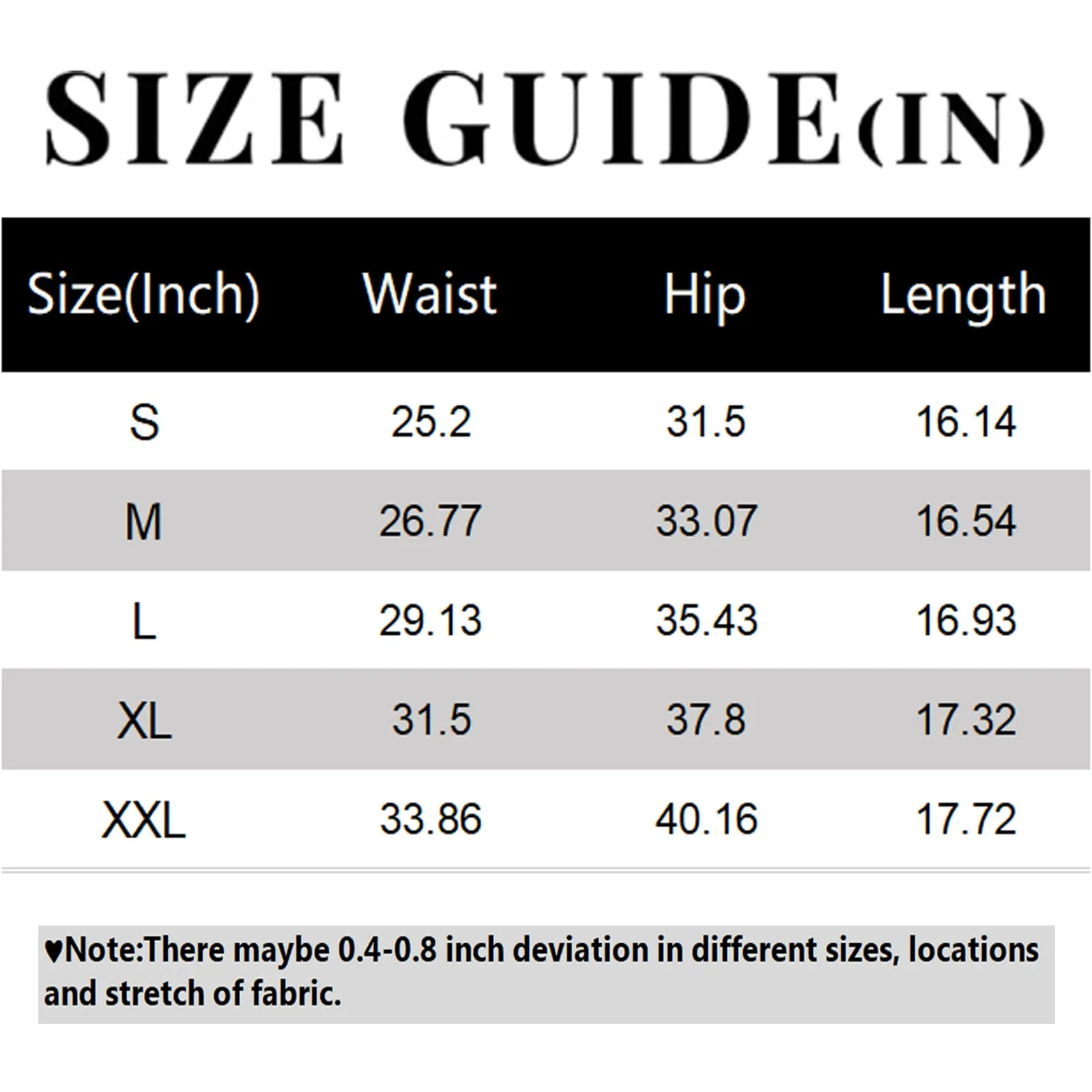 | Size | Waist | Hip | Length |
